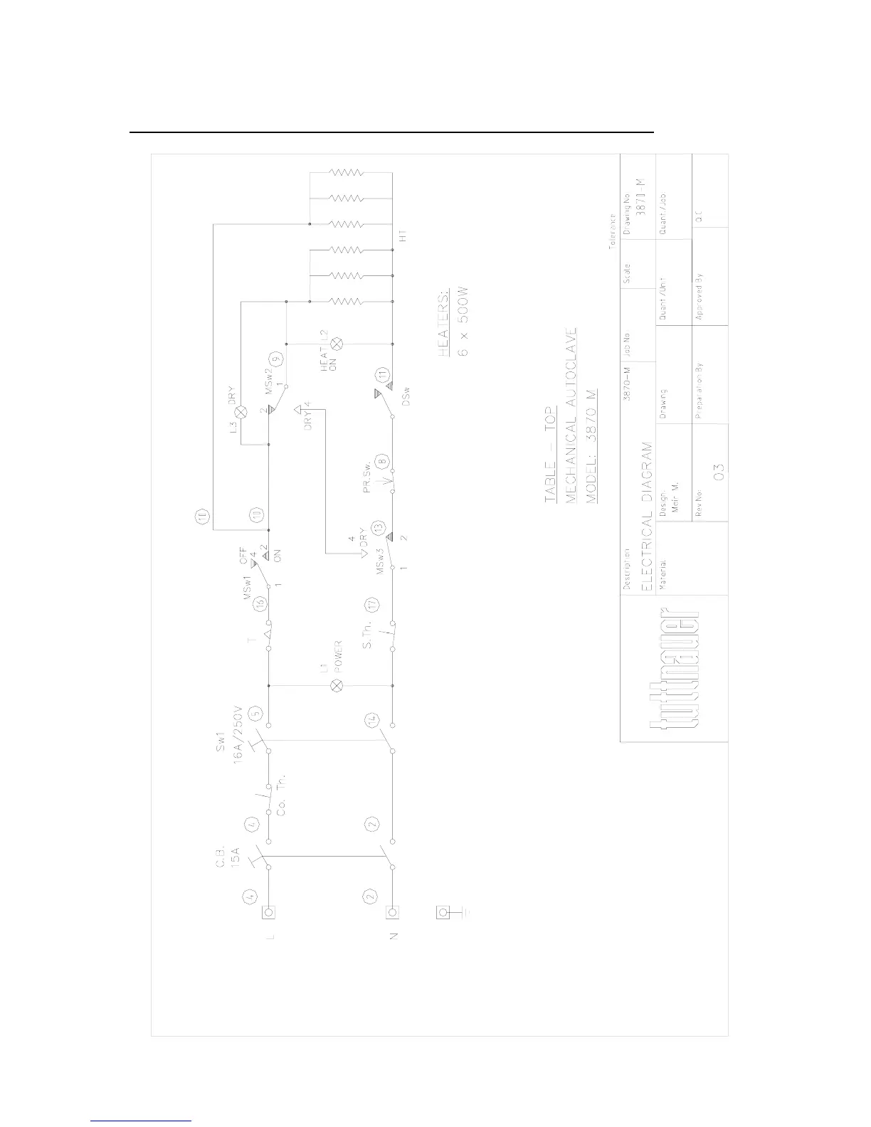 DRAWING OF ELECTRICAL SYSTEM OF TABLE AUTOCLAVE MODEL 3870 M