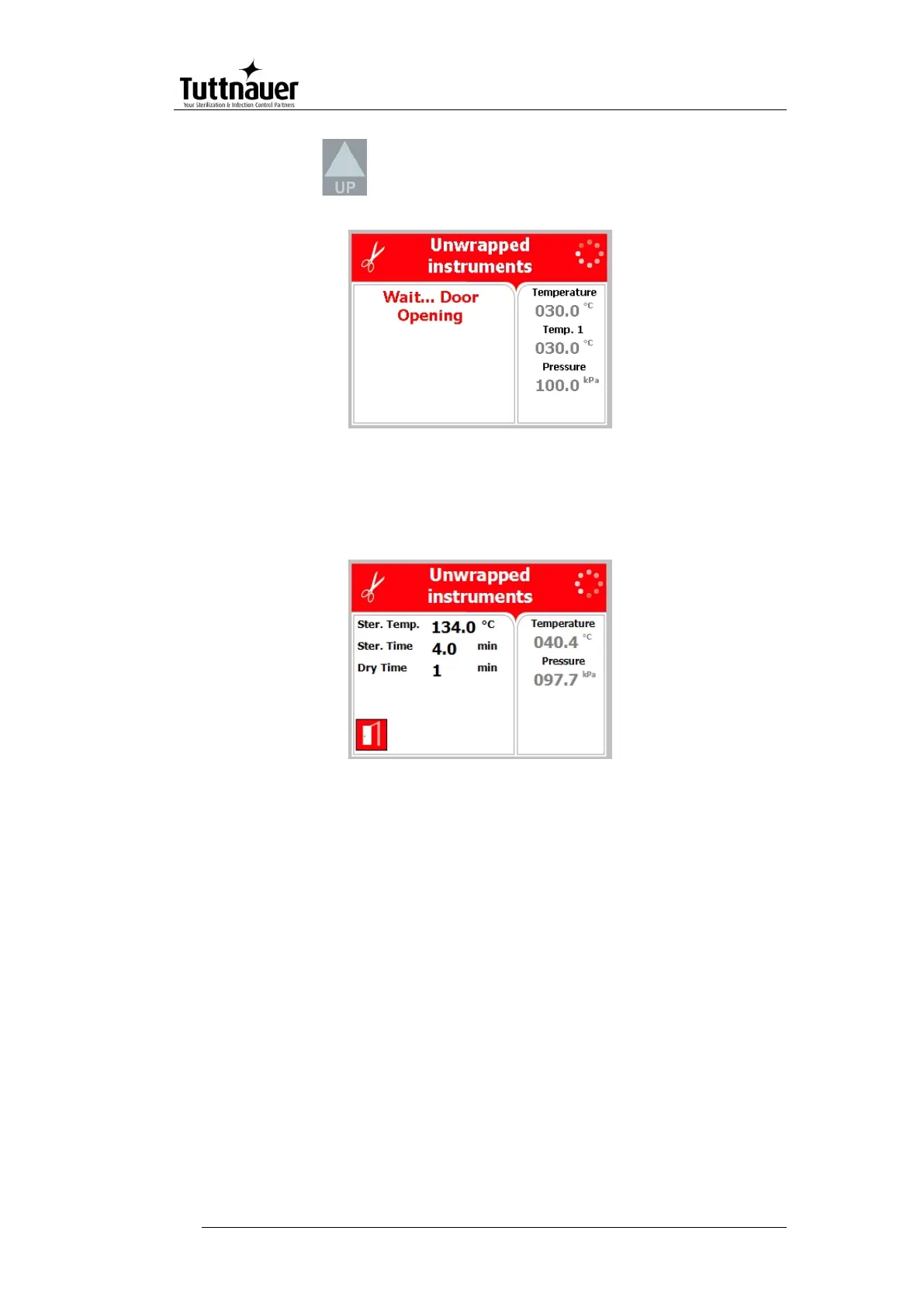 If the door has opened successfully, the following screen will be