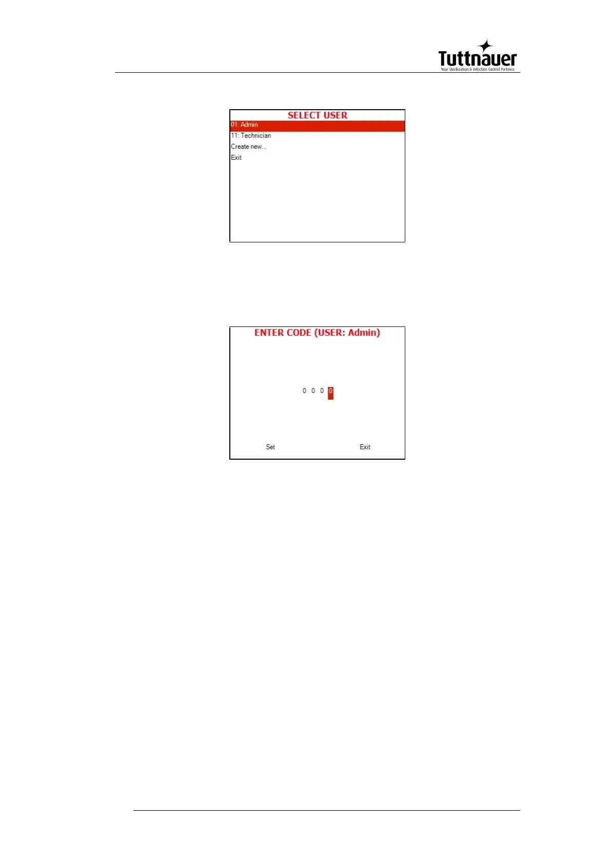 SELECT USER screen will be displayed: