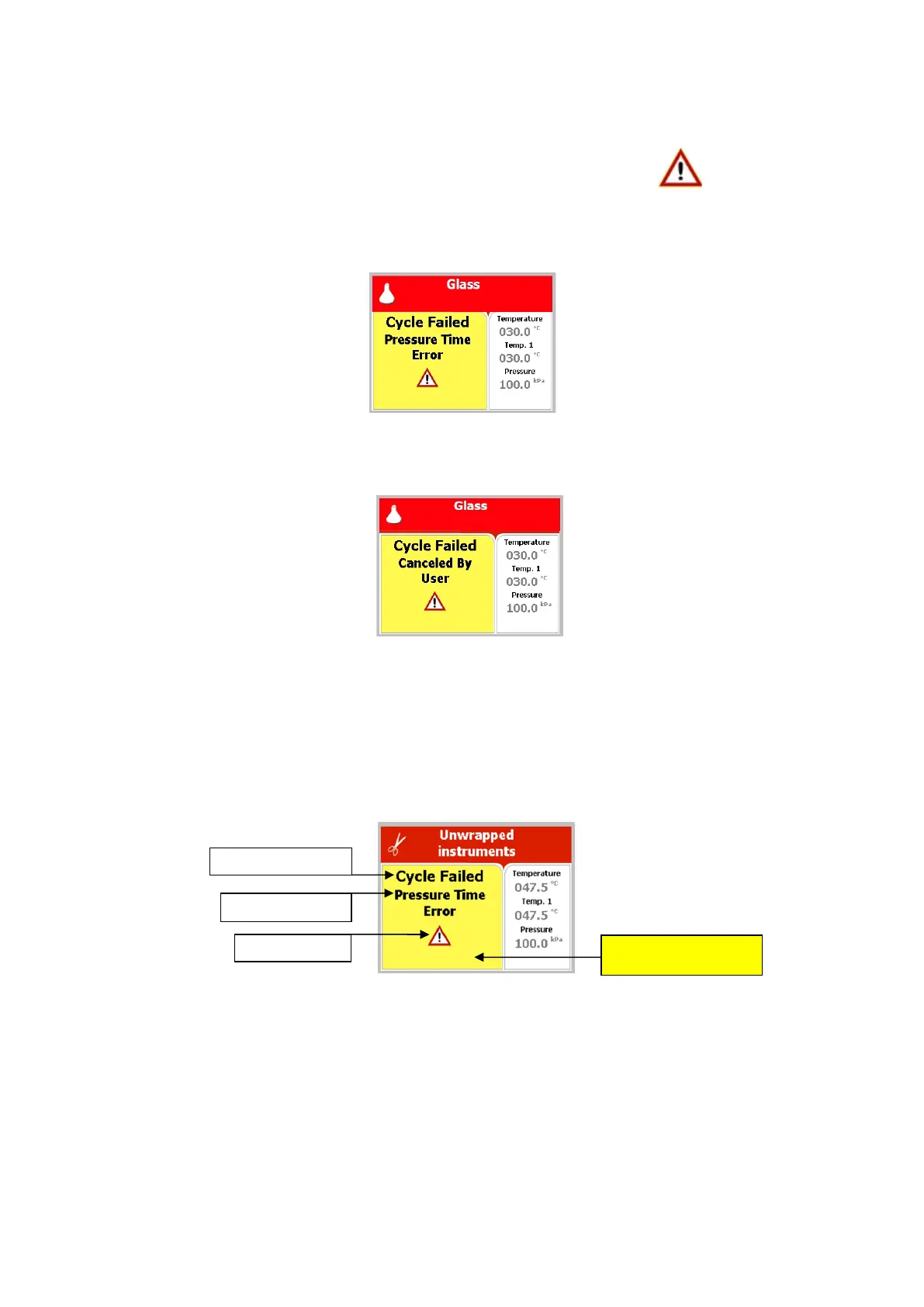 7.3 Screens following a fail cycle: