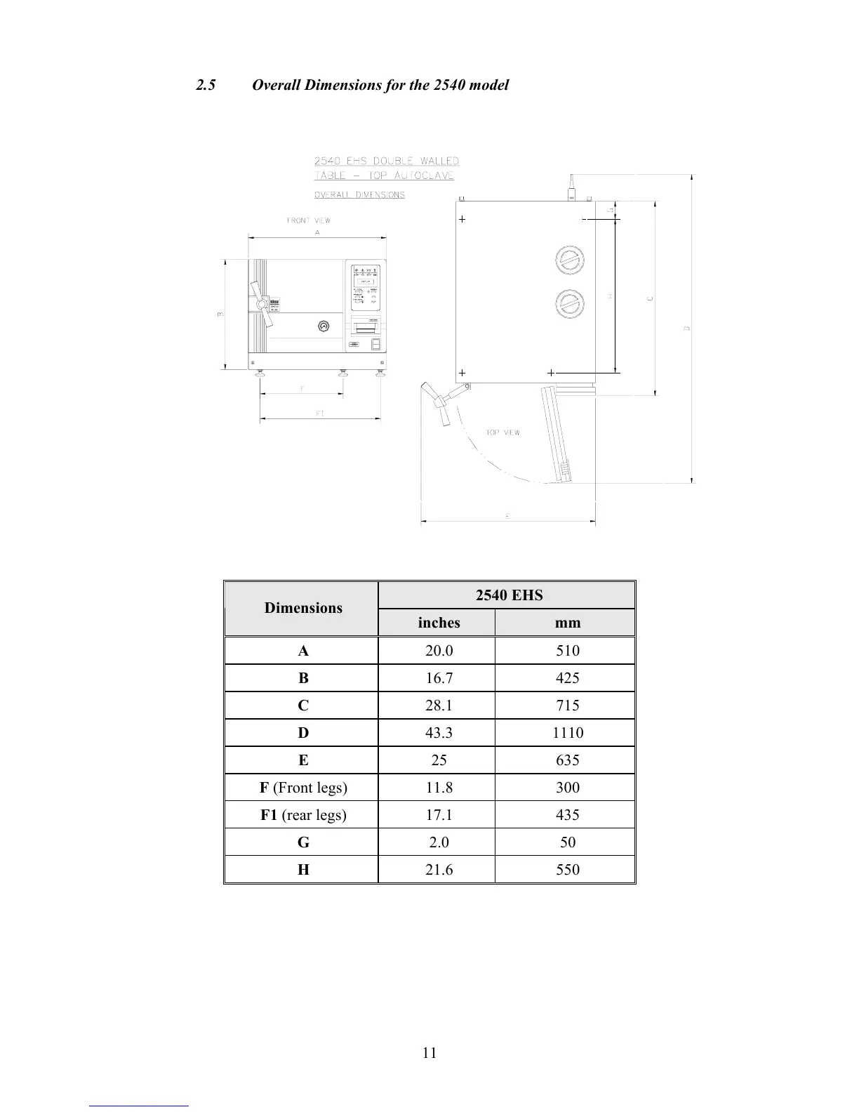Tuttnauer 3870 EHS - Overall Dimensions for the 2540 Model