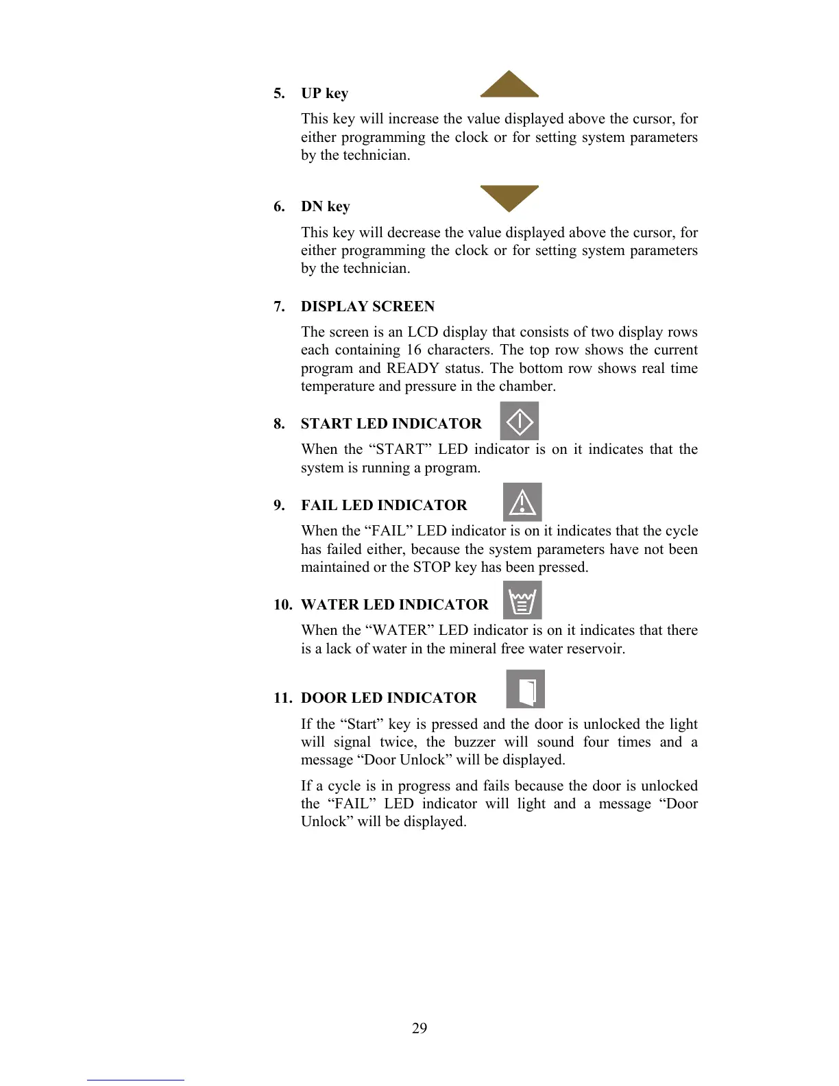 When the “FAIL” LED indicator is on it indicates that the cycle