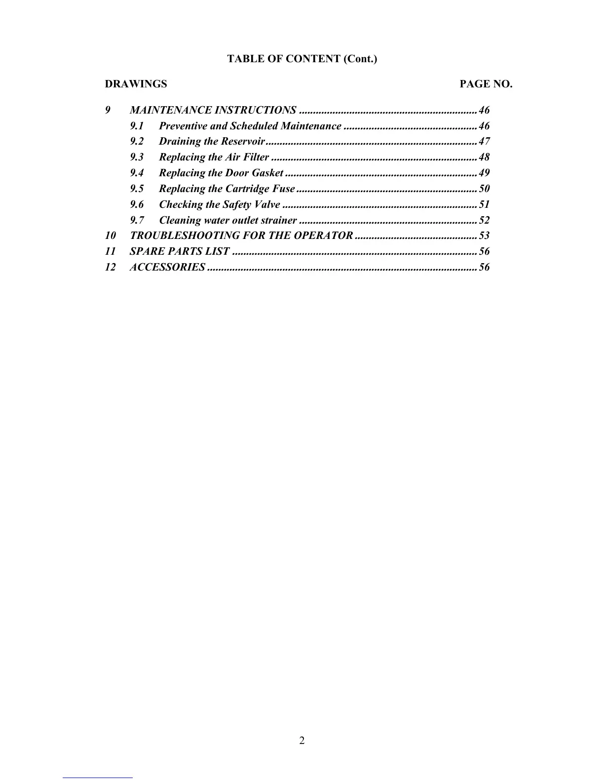 9 MAINTENANCE INSTRUCTIONS