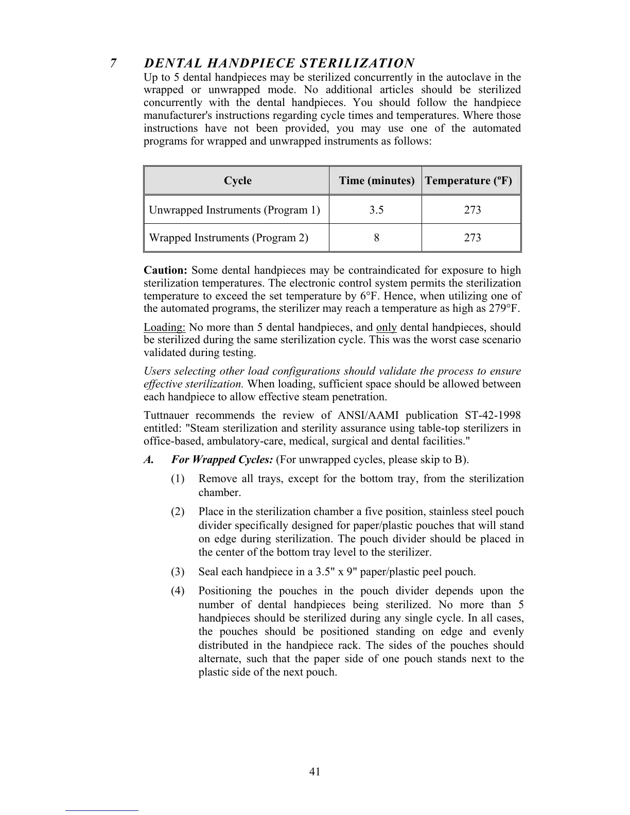 Tuttnauer 3870 EHS - DENTAL HANDPIECE STERILIZATION; Handpiece Sterilization Procedures
