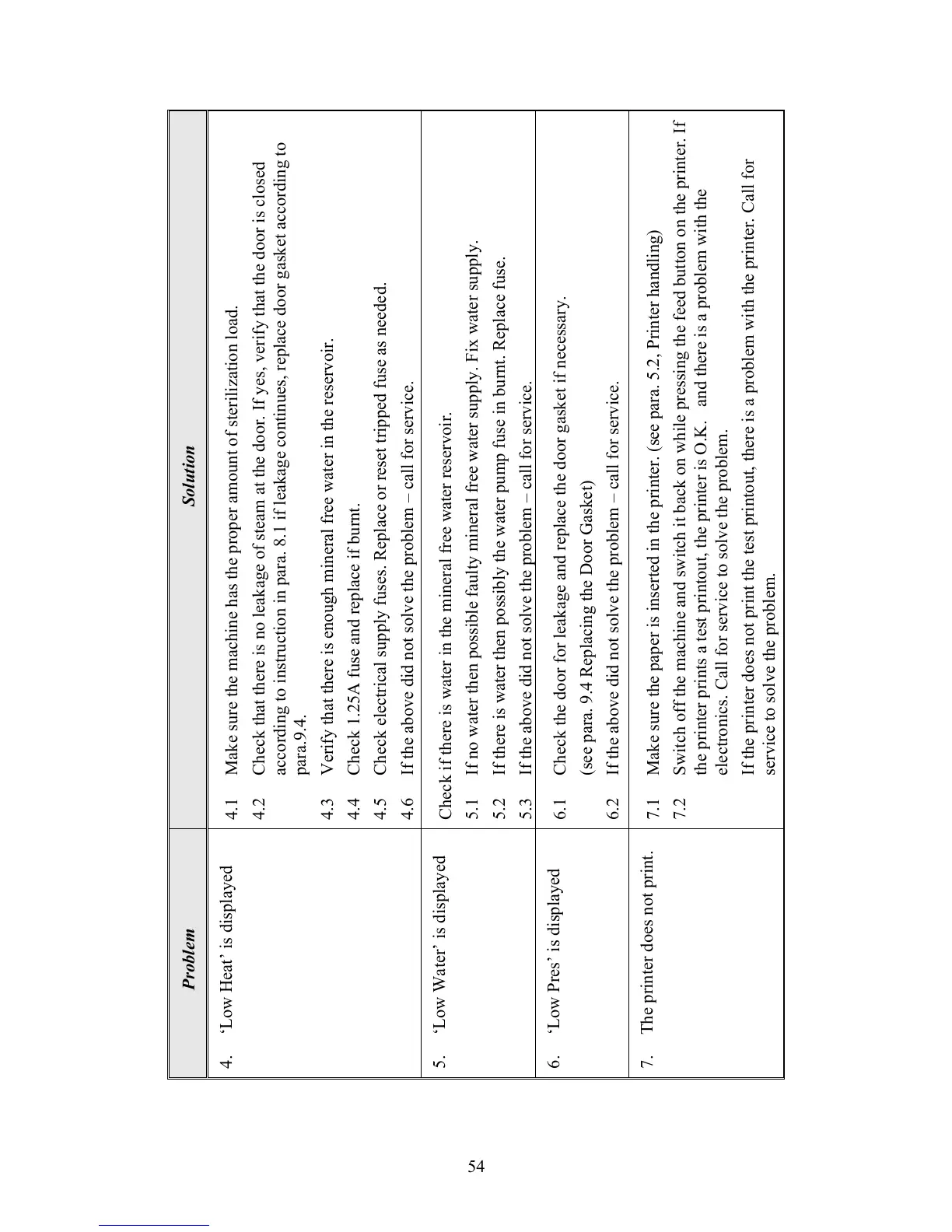 4.2 Check that there is no leakage of steam at the door. If yes, verify that the door is closed