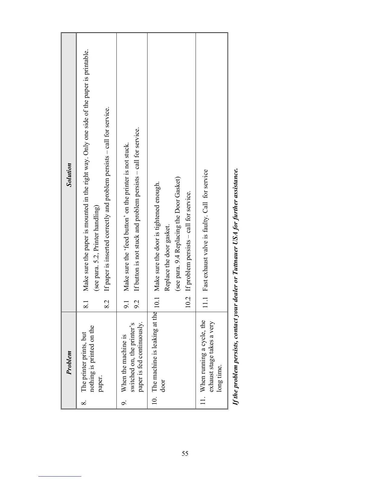 If the problem persists, contact your dealer or Tuttnauer USA for further assistance.