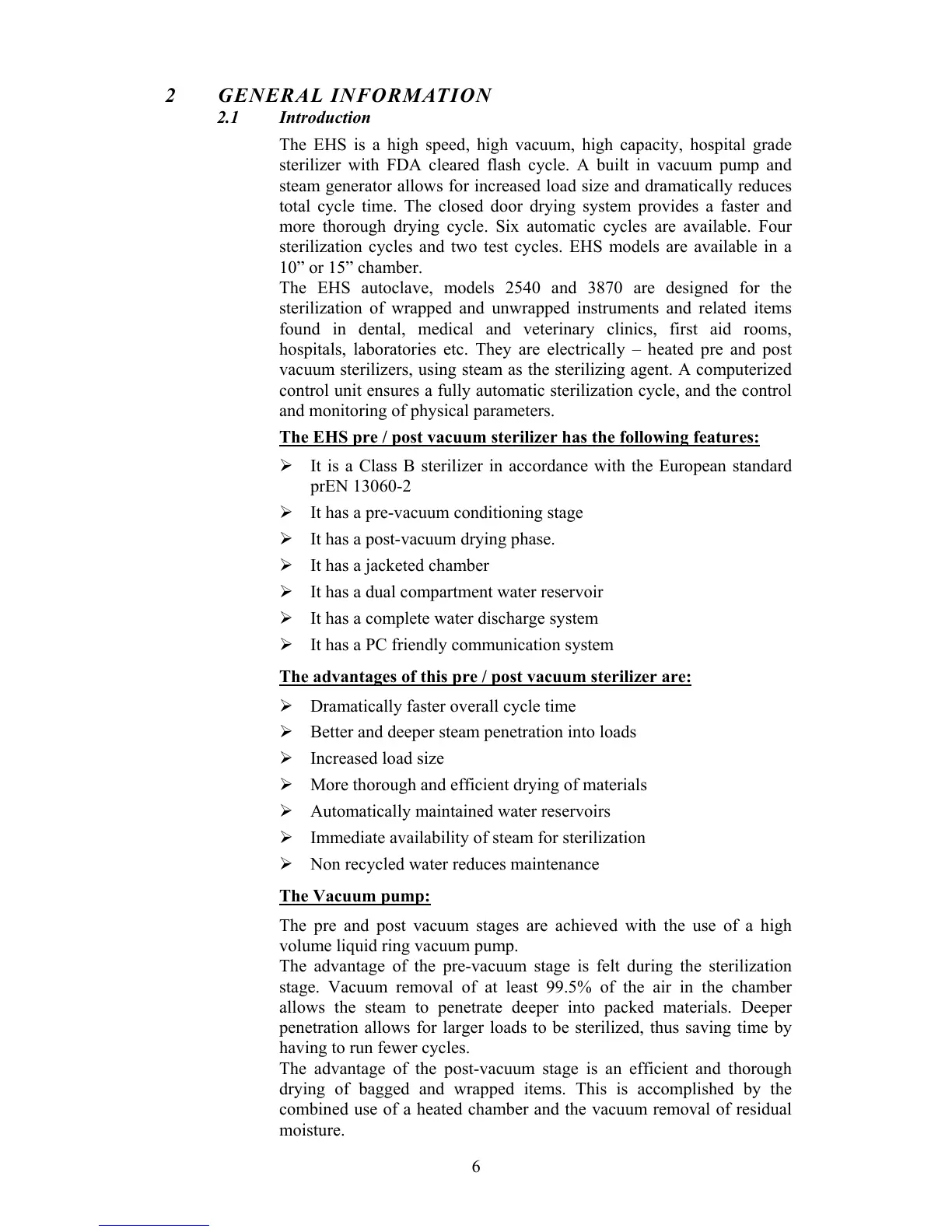 The EHS autoclave, models 2540 and 3870 are designed for the