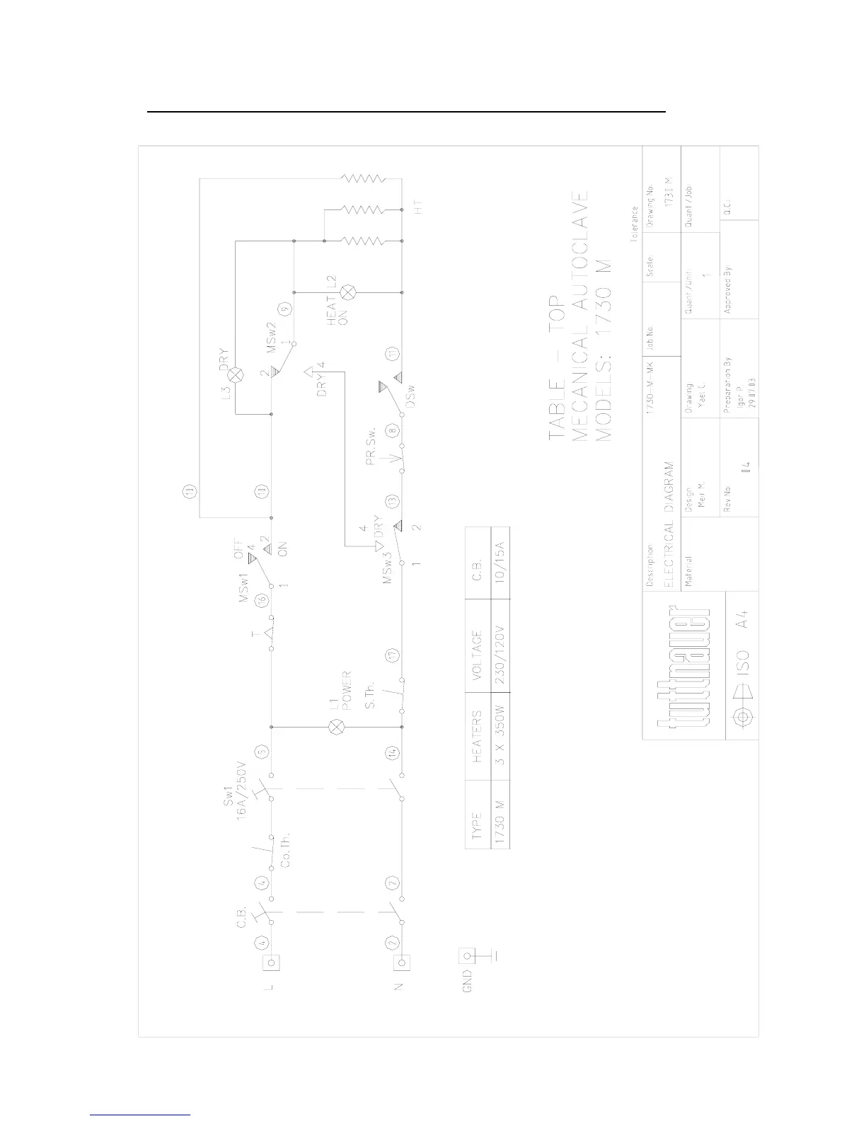 DRAWING OF ELECTRICAL SYSTEM OF TABLE AUTOCLAVE MODEL 1730M