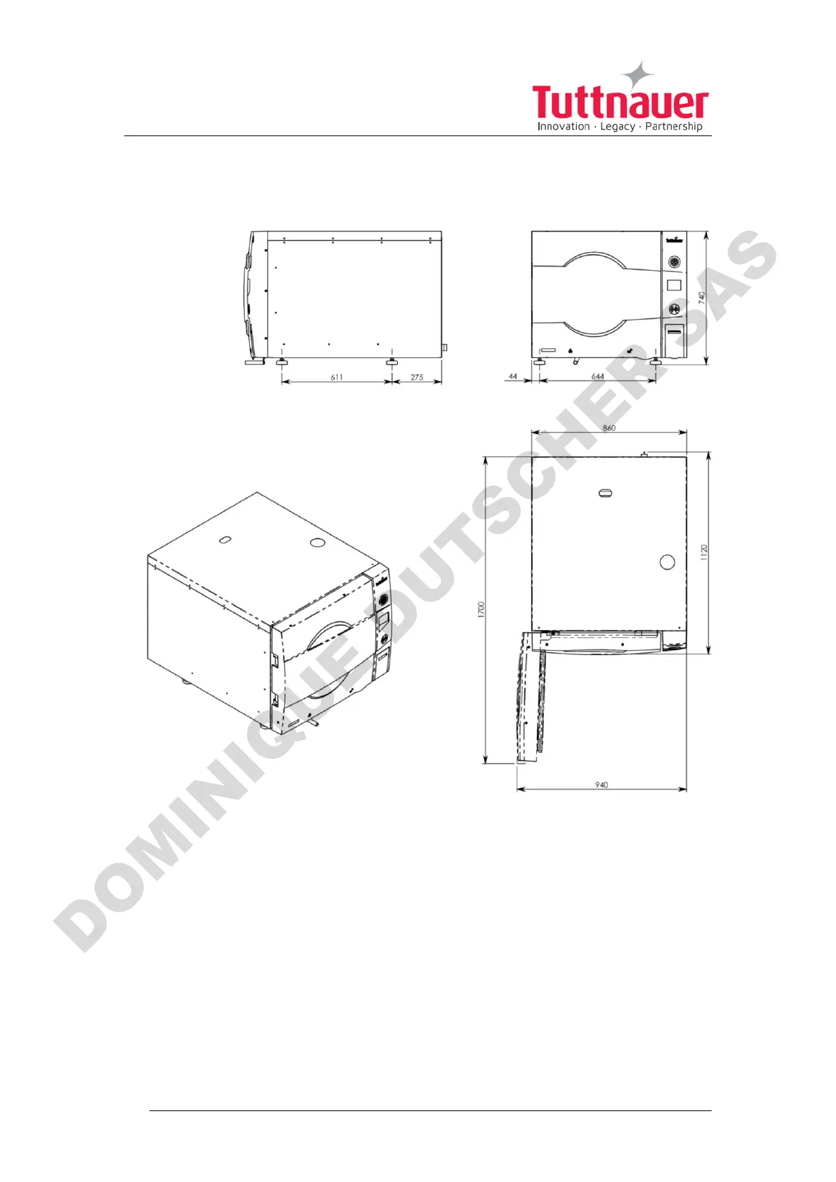 Tuttnauer 5050 - Overall Dimensions - ELCPV 5050-MD; ELCPV 5050-D