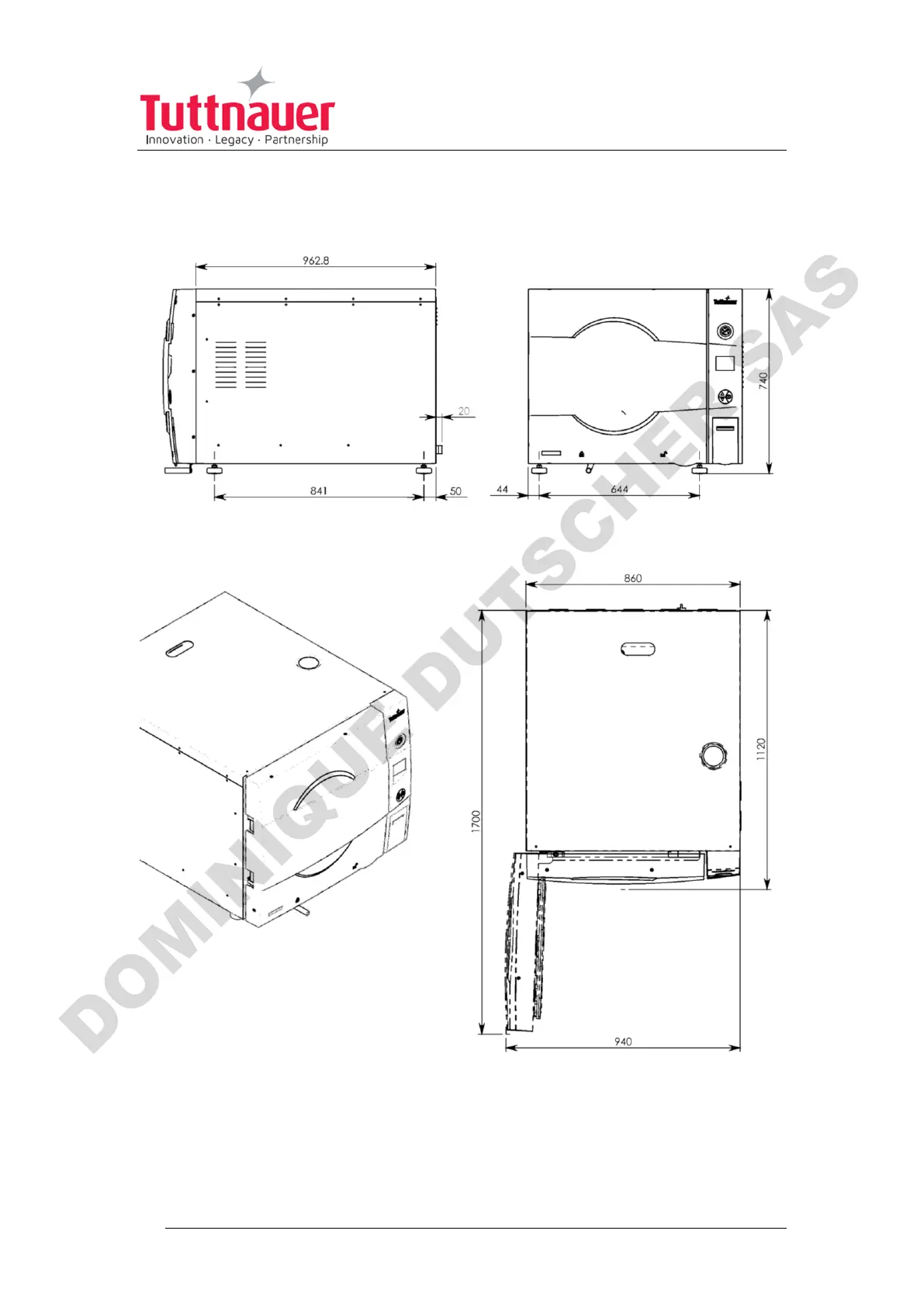 Tuttnauer 5050 - Overall Dimensions - ELPRC 5075-MD; ELPRC 5075-MD