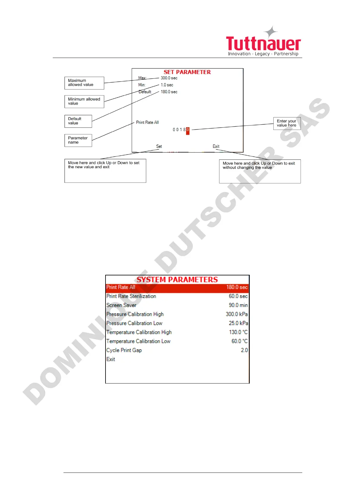 This menu is listing the system parameters that are the same for all