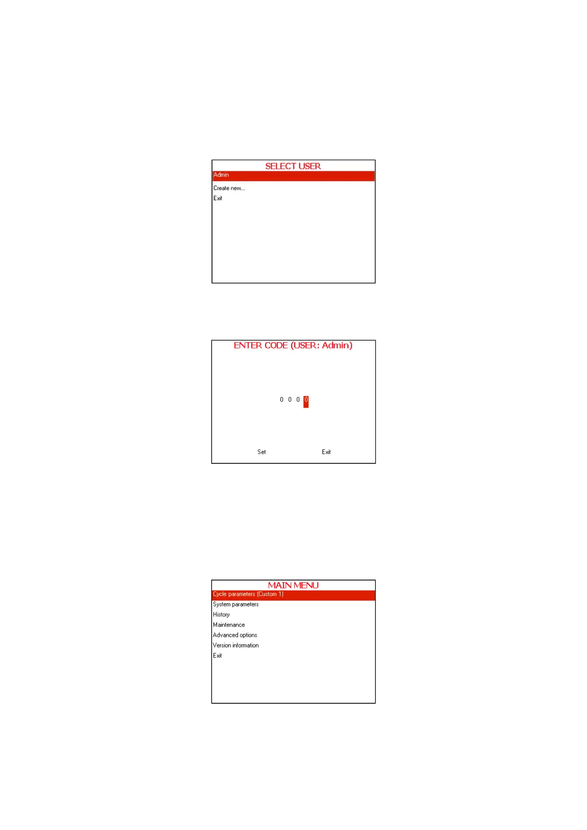 MAIN MENU of the autoclave.