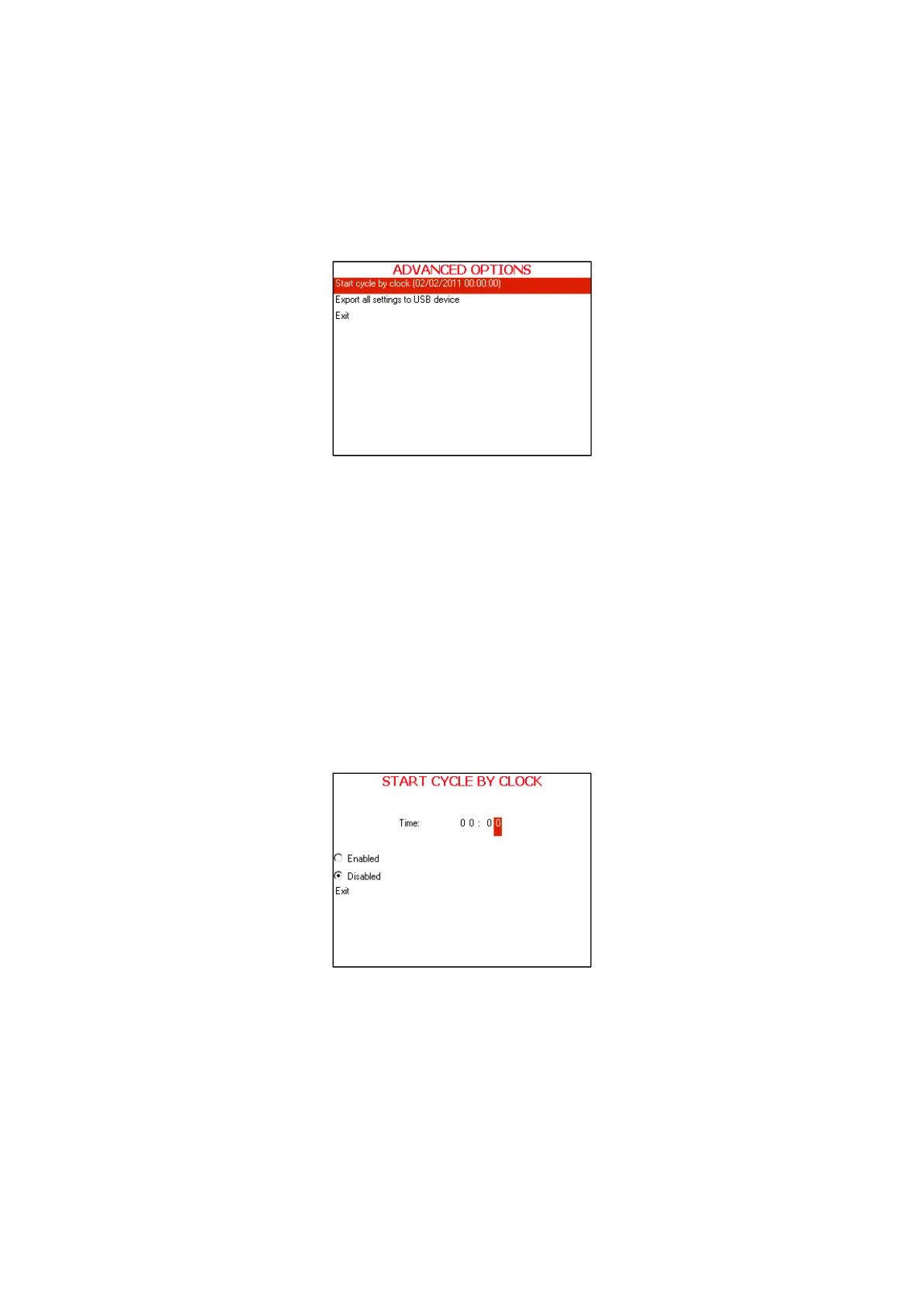 This Start cycle by clock screen will be displayed when