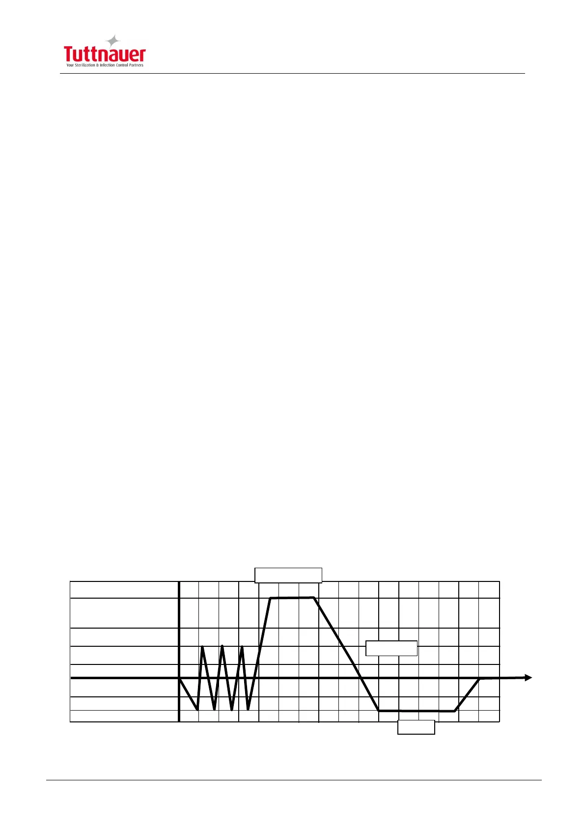 Residual air is displaced by 4 vacuum pulses (down to 25 kPa) and 3 steam pulses up