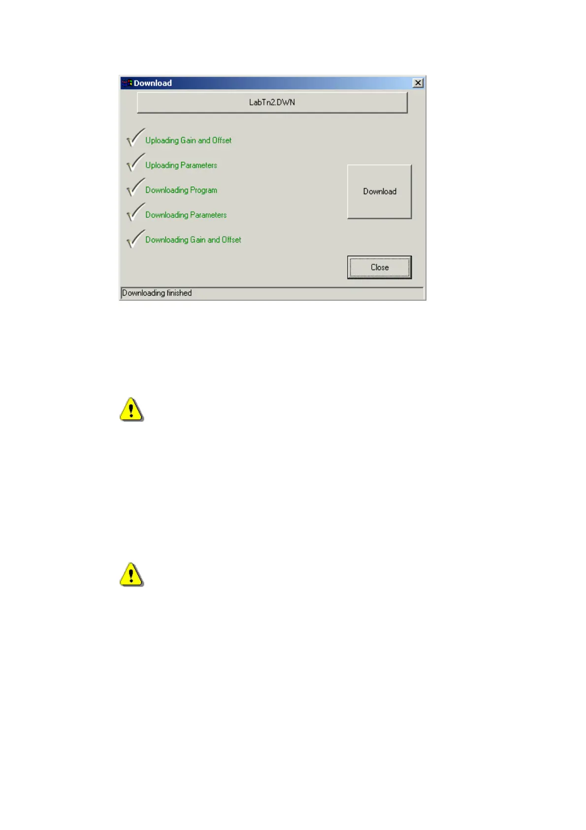 Note: Upload and Download green messages of the Parameters and Gain &