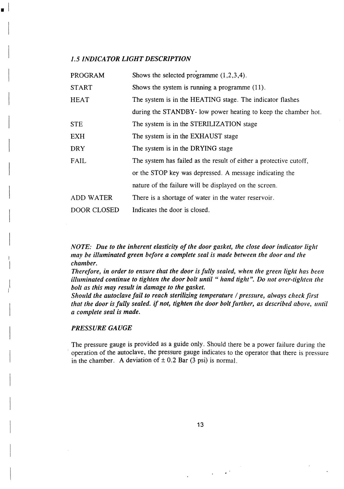 Tuttnauer EA - Indicator Light Description; Pressure Gauge