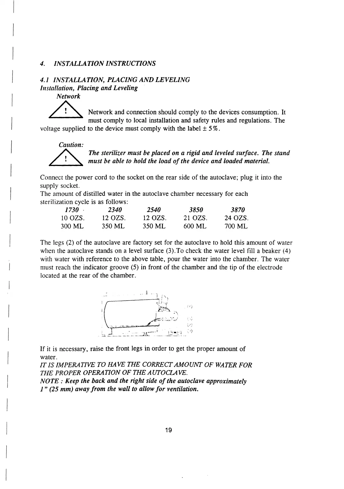 Tuttnauer EA - Installation, Placing and Leveling