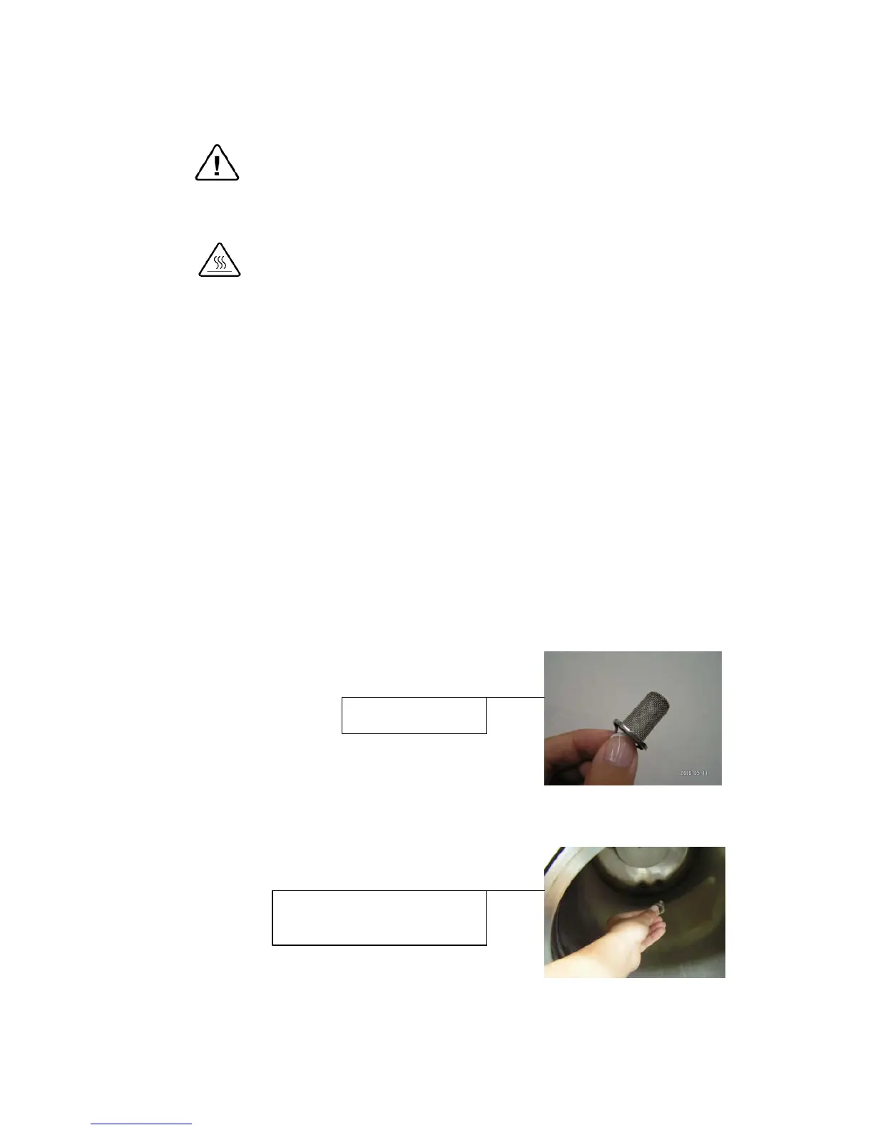 Touching the hot strainer’s cover may cause severe injuries.