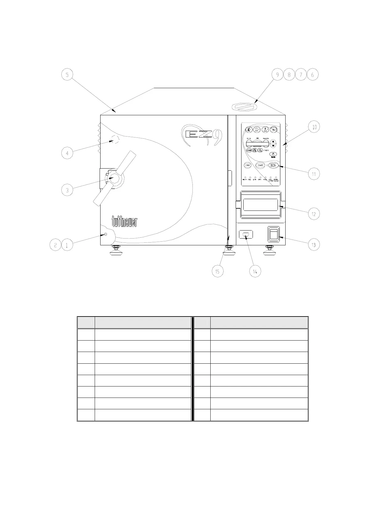 5 Autoclave cover 13 Main switch