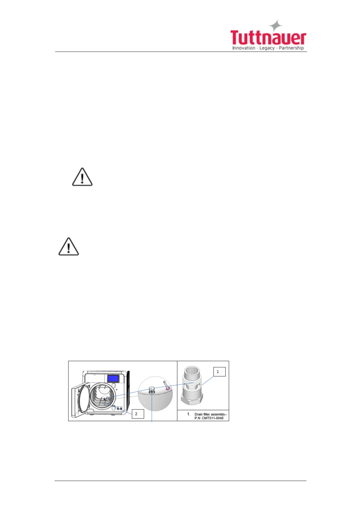 end, to reach the filter open the autoclave chamber door, remove the tray (see