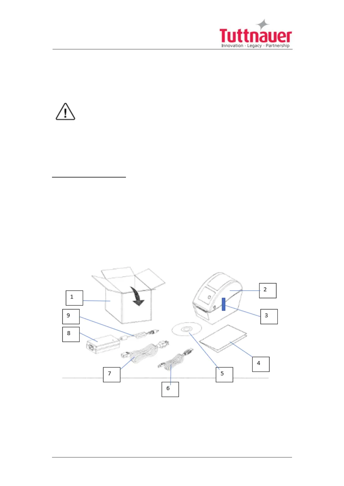 1. Carefully open the printer box (1) and remove the printer packing.