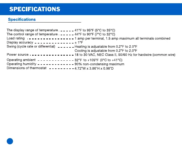 TUTTOKool TK-701W - Specifications; Thermostat Technical Specifications