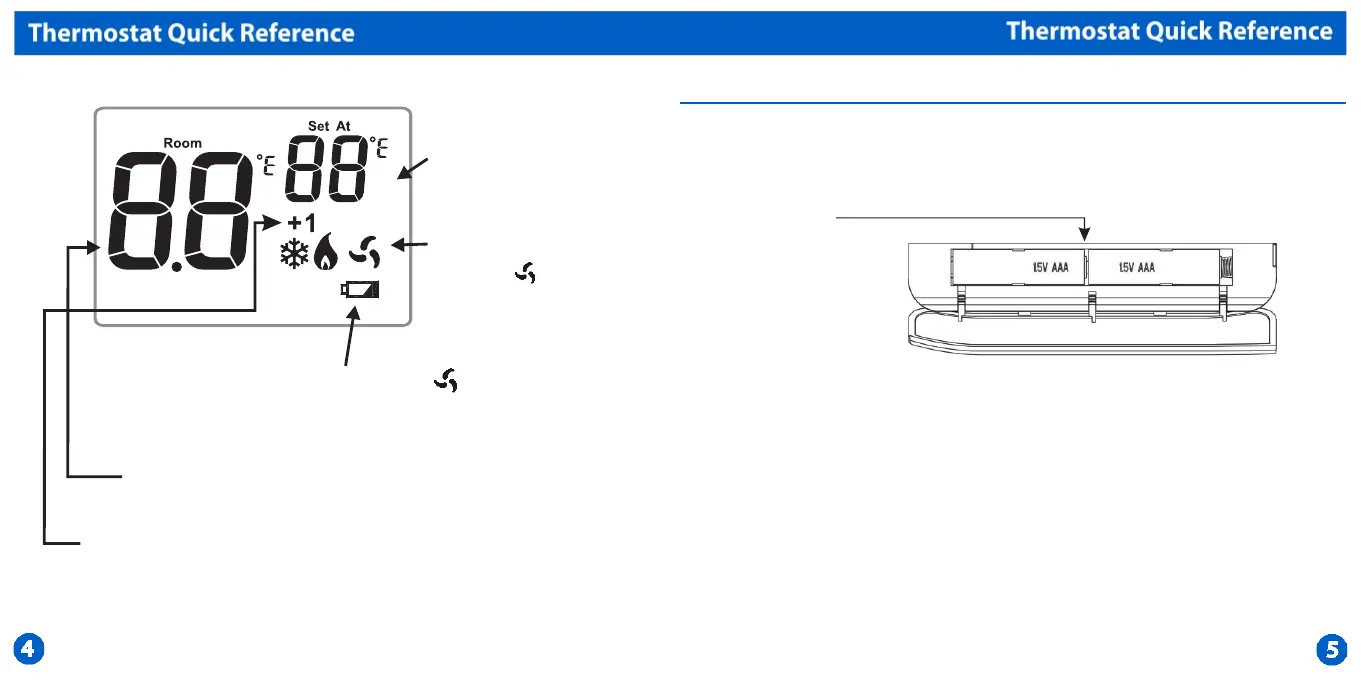 TUTTOKool TK-721 - Thermostat Quick Reference Details; LCD Display Indicators; Battery Door Installation