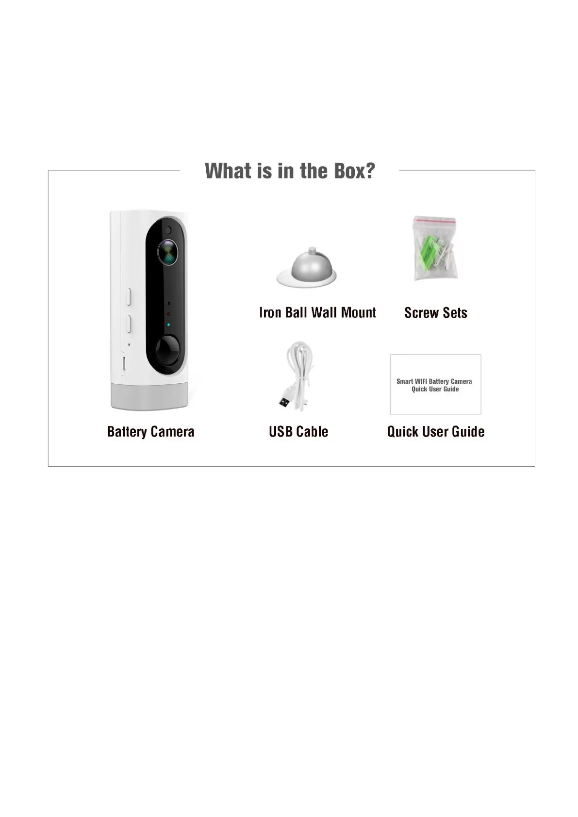 1x camera, 1x wall mount, 1x screws