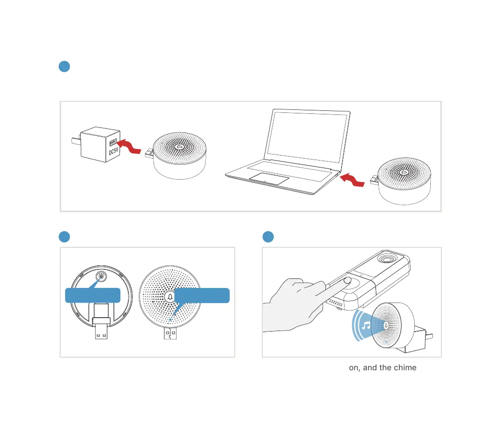 The chime can be powered by USB compatible power source(DC5V 1A), or by the USB port on your