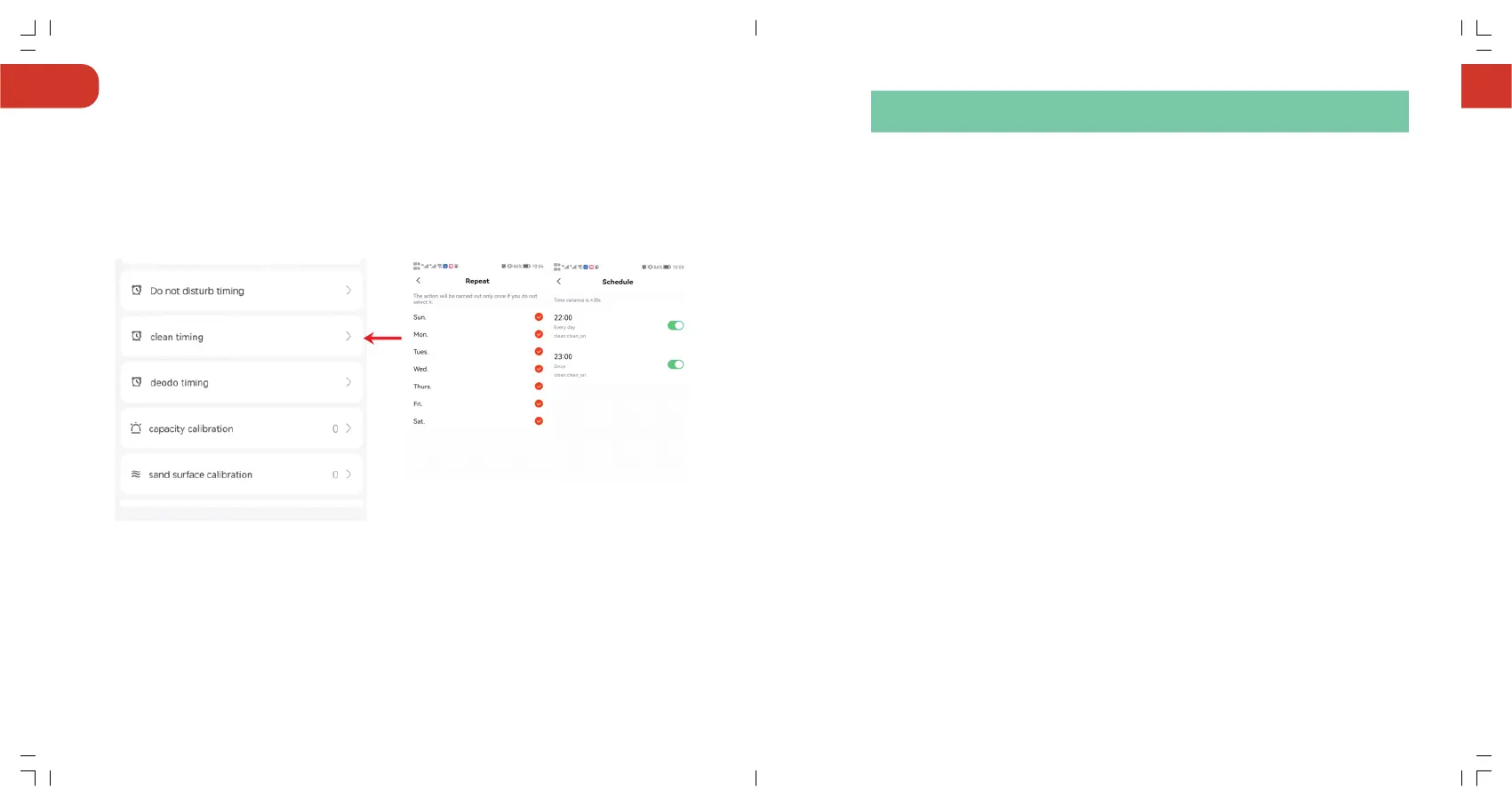 Stellen Sie in der App "Clean Timing" ein, dass das Gerät regelmäßig gereinigt wird.
