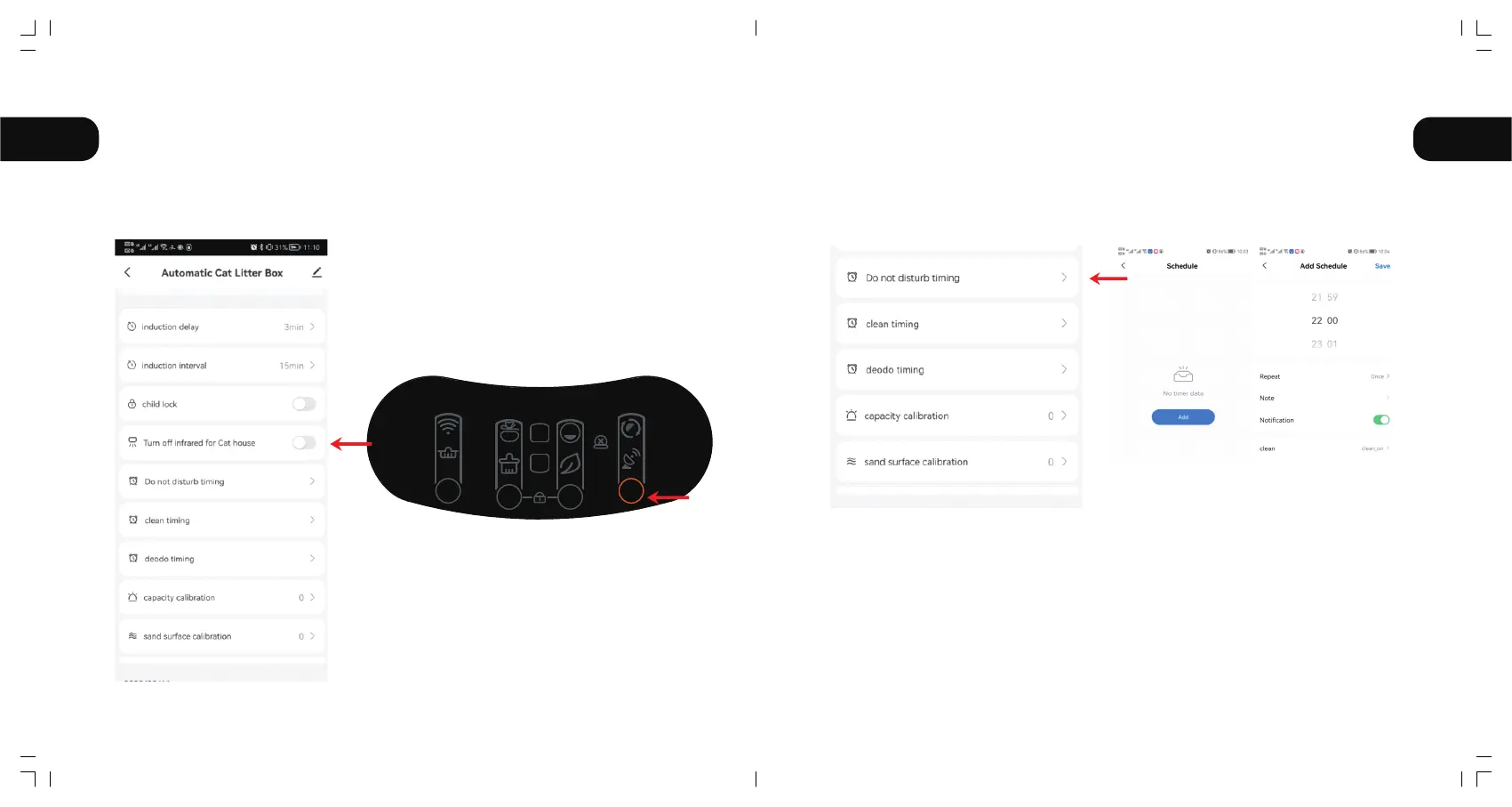 When cat litter box is placed in the bedroom, you can set in the App "Do not