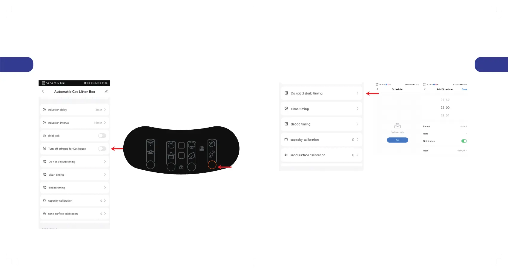 Lorsque le bac à litière pour chat est placé dans une cage ou un espace étroit, veuillez cliquer sur