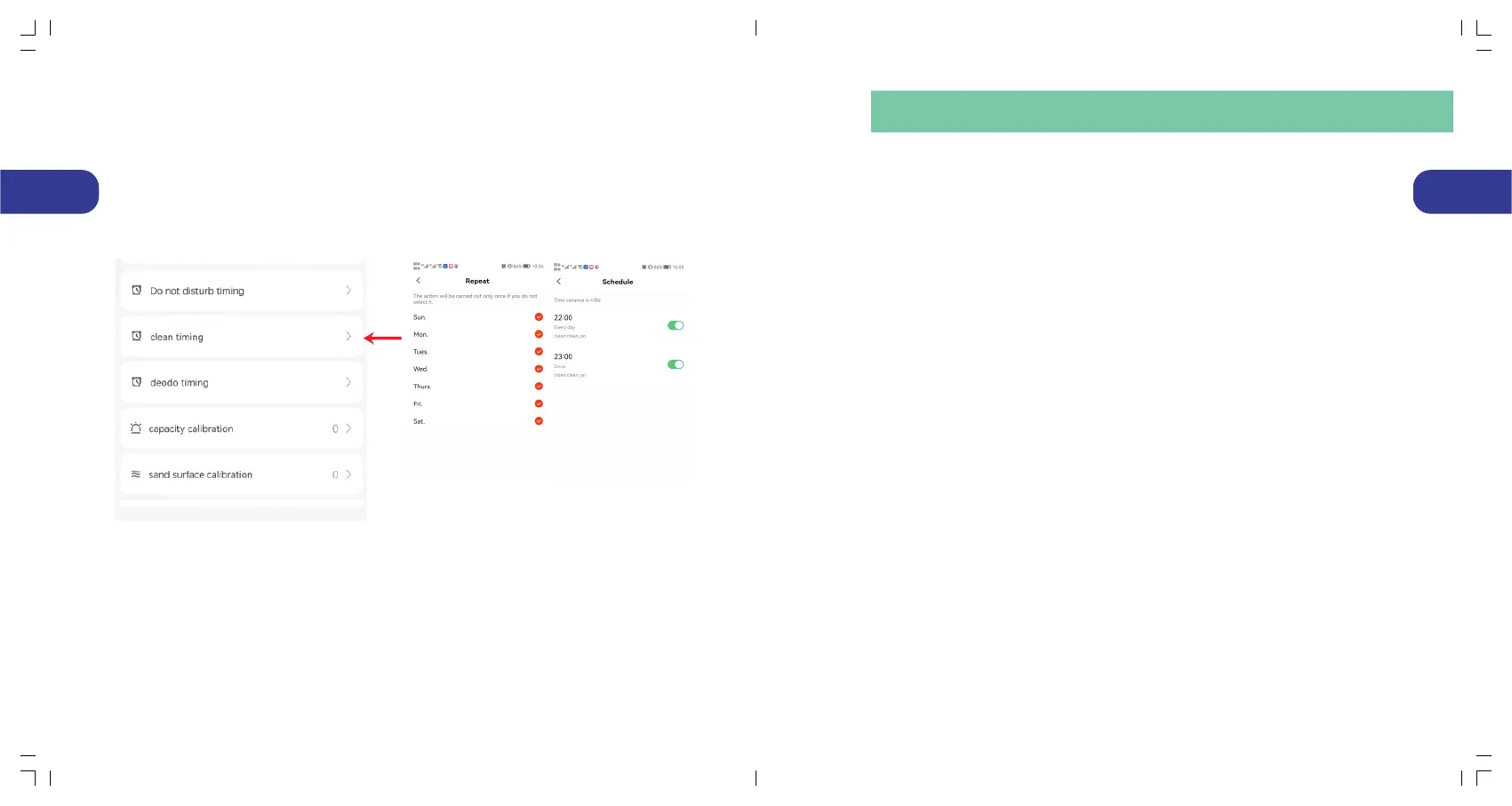 Réglez l'appareil pour qu'il élimine régulièrement les odeurs dans l'application "Deodo Timing".