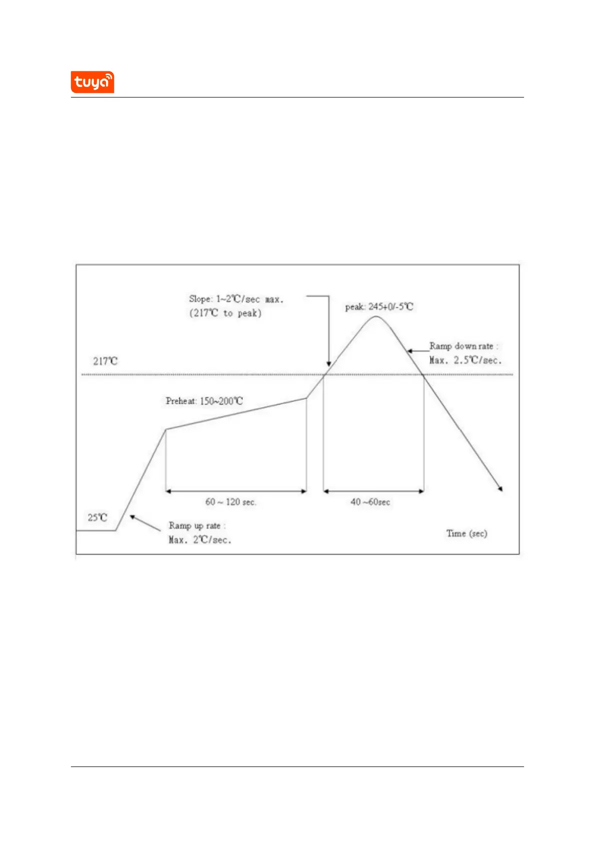 temperature is 245°C. The reflow temperature curve is shown as belows: Refer to