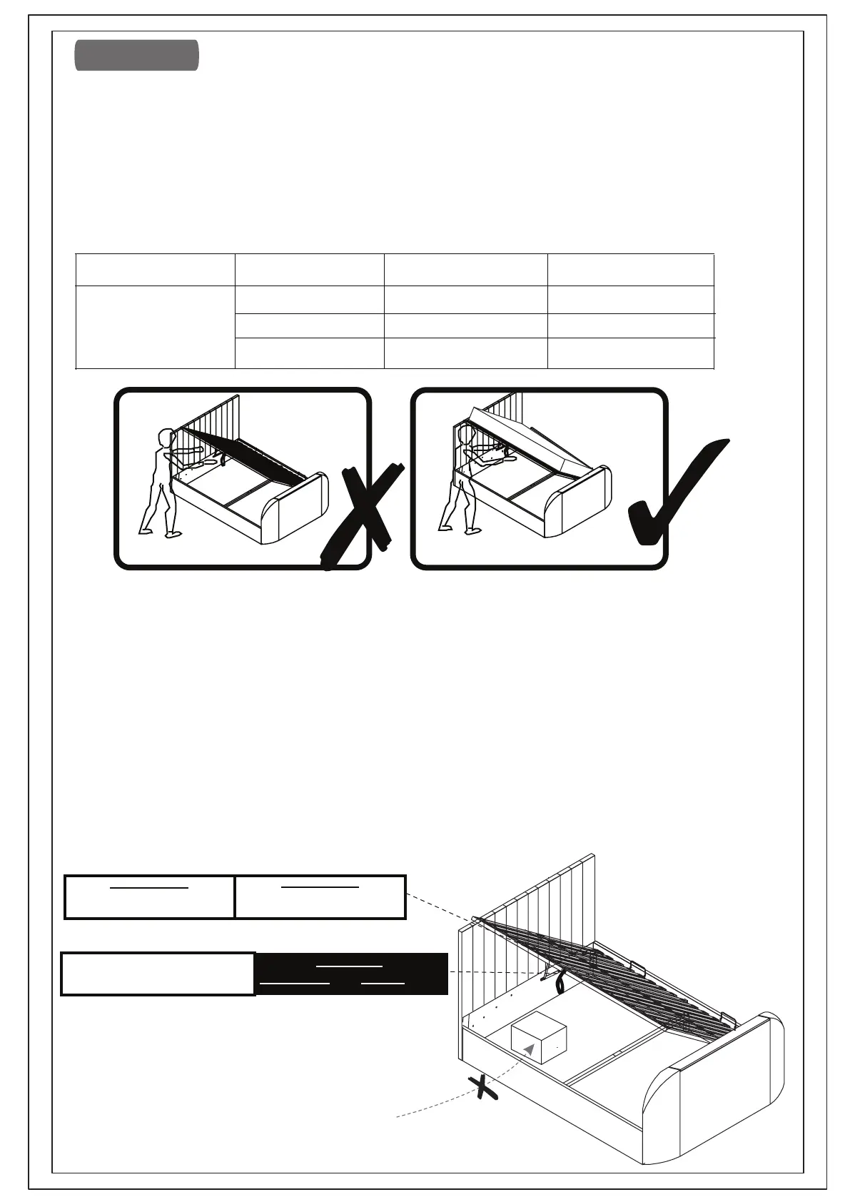 Do not attempt to lie on the mattress when the ottoman is in the raised position.