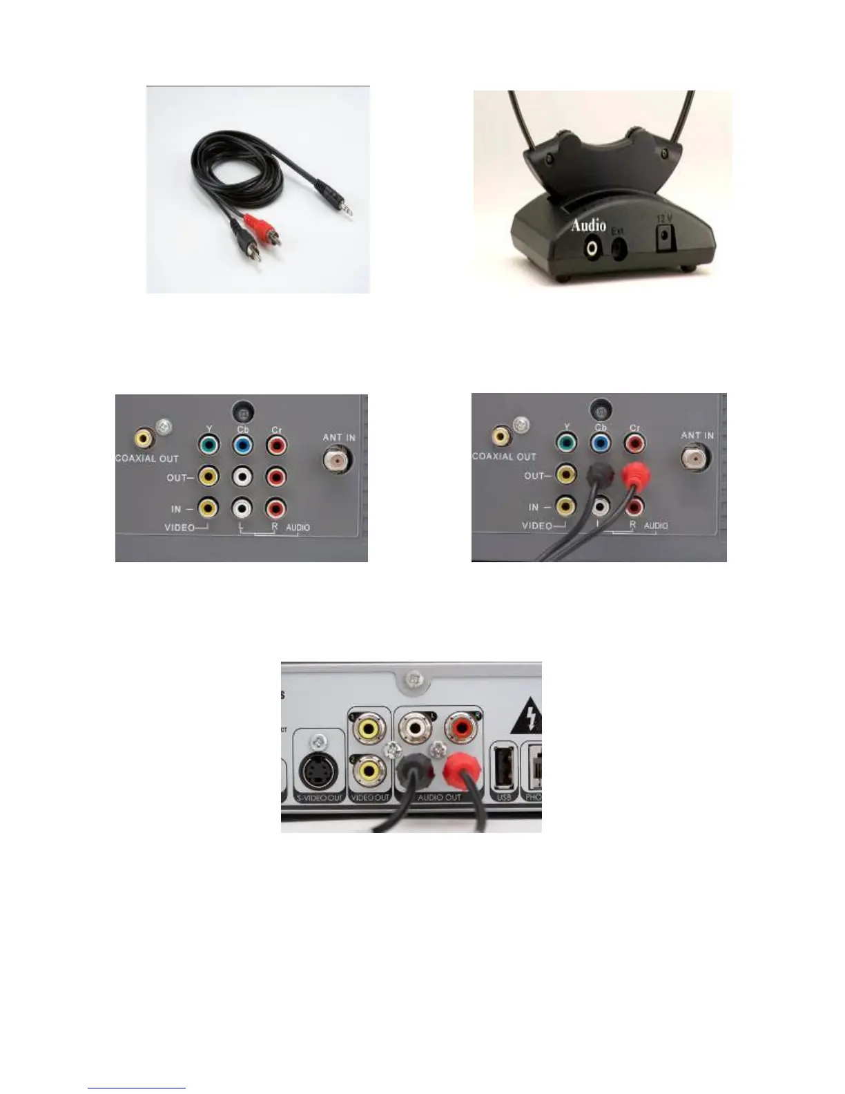 your (9) satellite box, or cable box. Audio Out ports are labeled "Audio Out" or "Out".