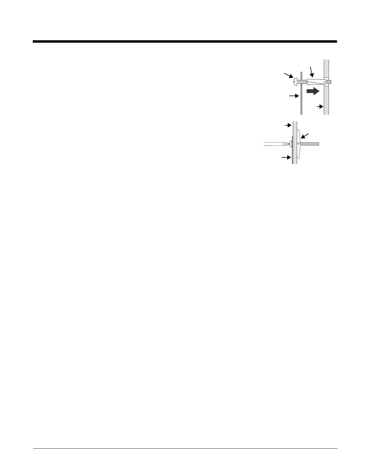 pilot hole until the nut clears inside wall surface. The toggle nut should