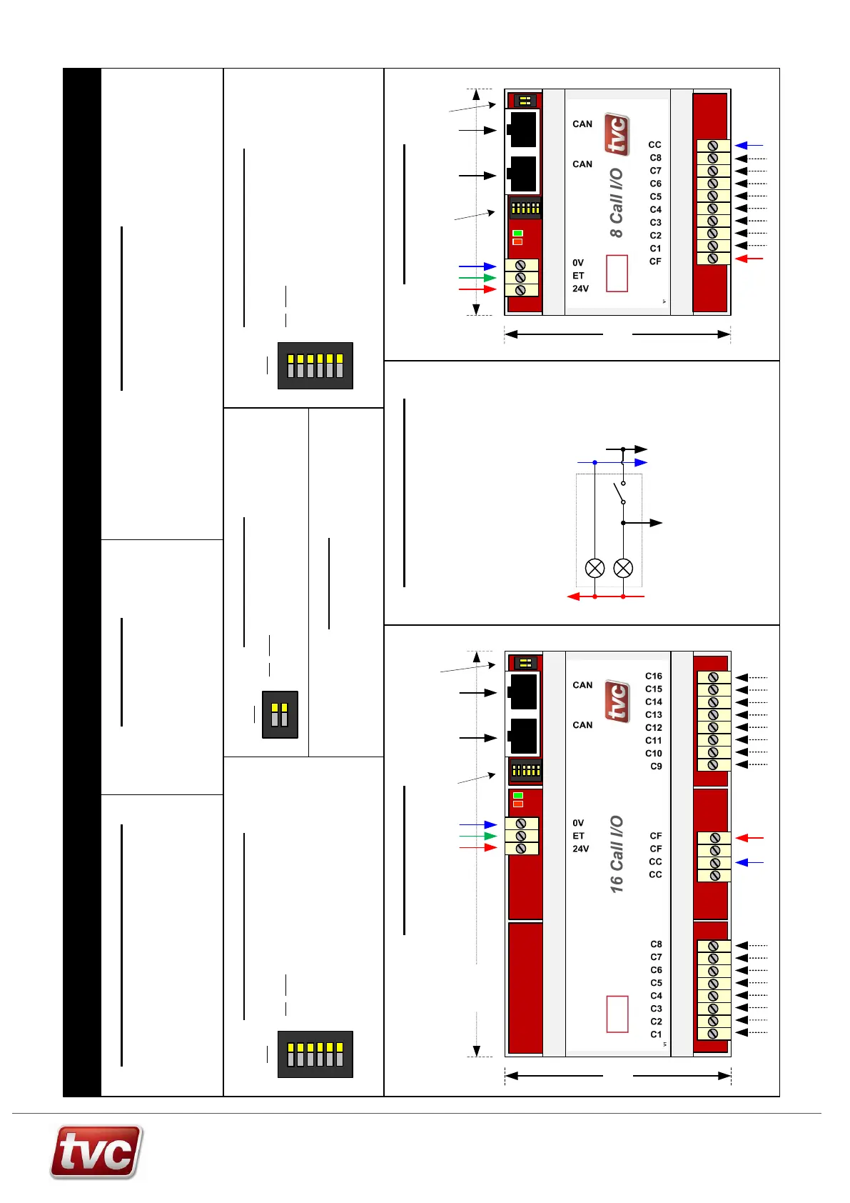 includes:- 8 or 16 call I/Os, these are designed for a 24V d.c. LED type call