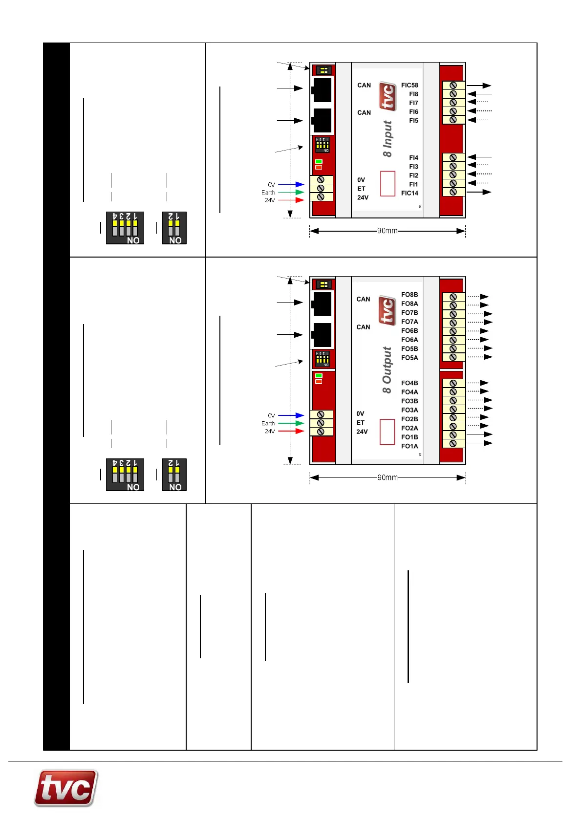8 Input DIP Settings8 Output DIP Settings