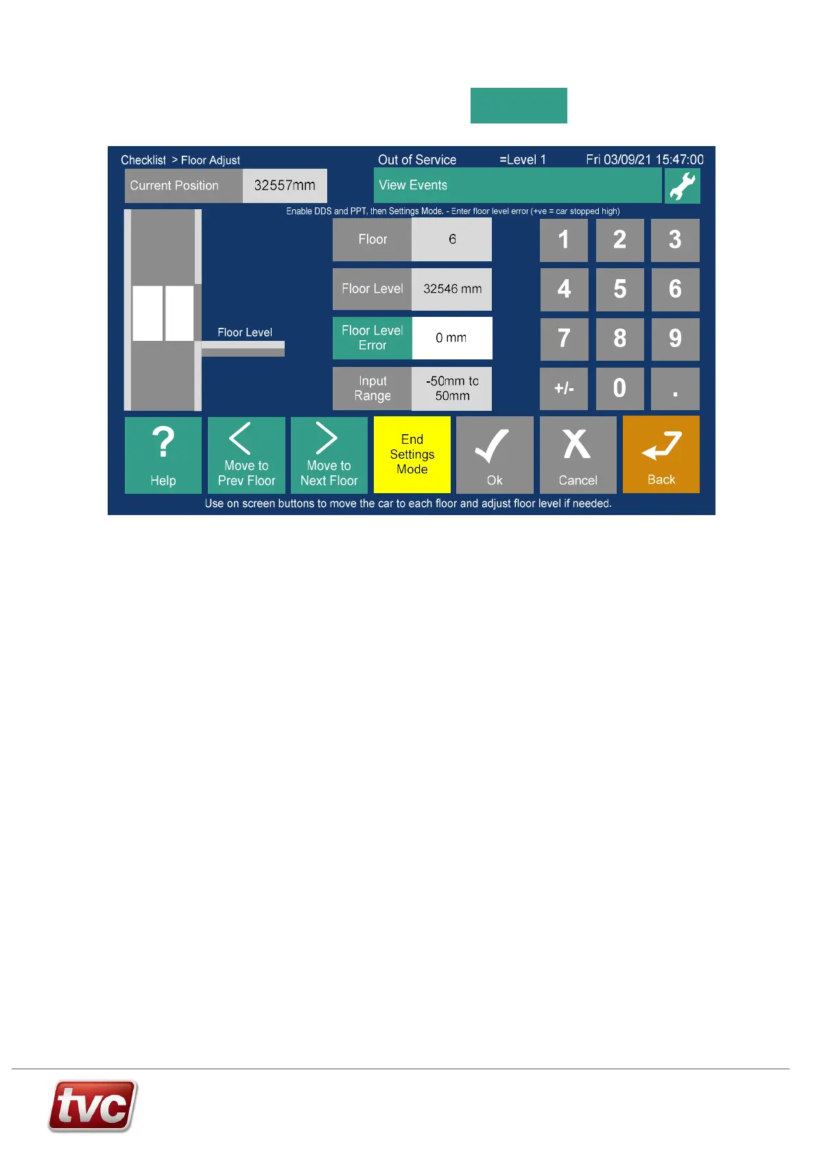 5) Once the car is stationary at the taught level the floor can be adjusted up or down by up to 50mm. If the