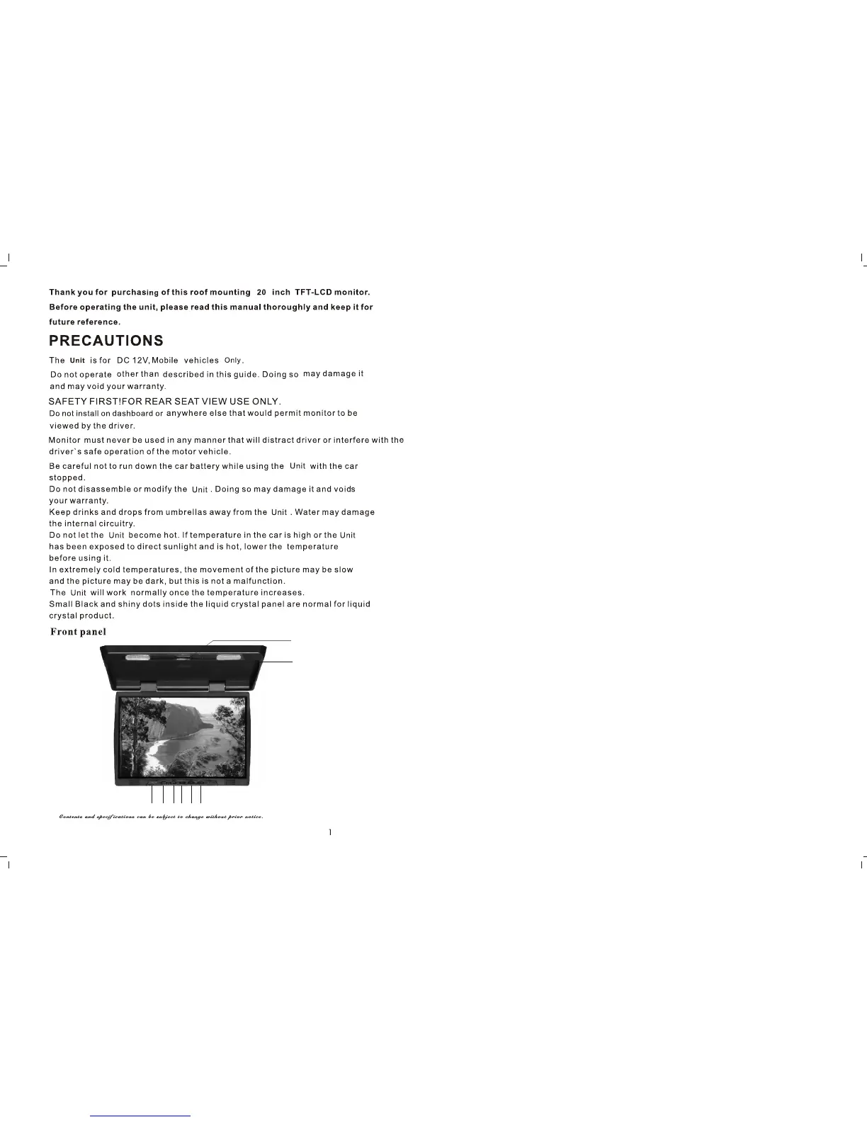 Tview T206IR - PRECAUTIONS; Safety First for Rear Seat Use
