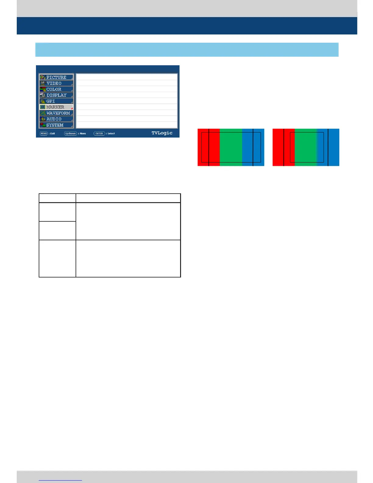 100%, EBU ACTION 16:9, EBU GRAPHIC 16:9,