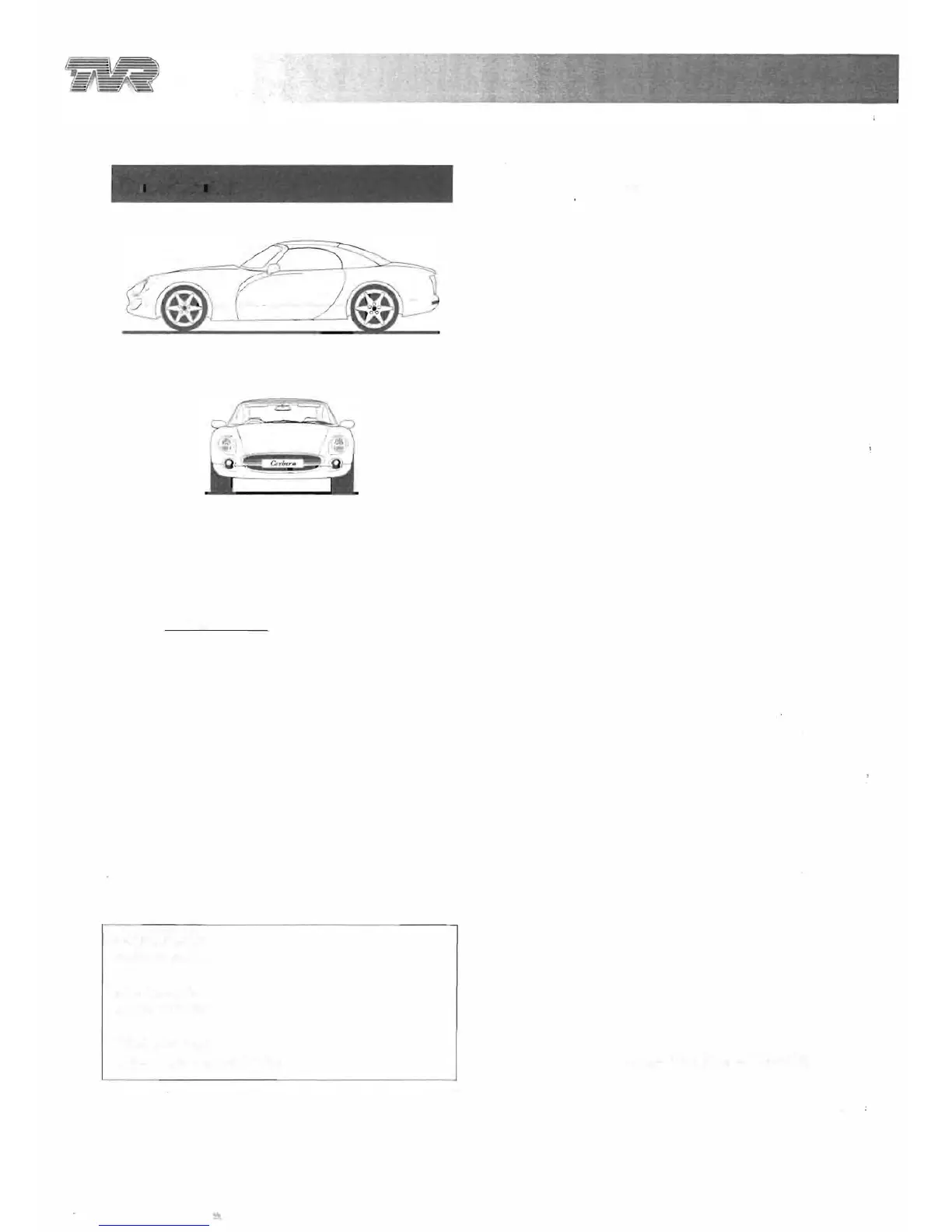TVR Cerbera - Workshop Manual Interpretation; Vehicle Dimensions; Poisonous Substances Safety; Fuel Handling Safety