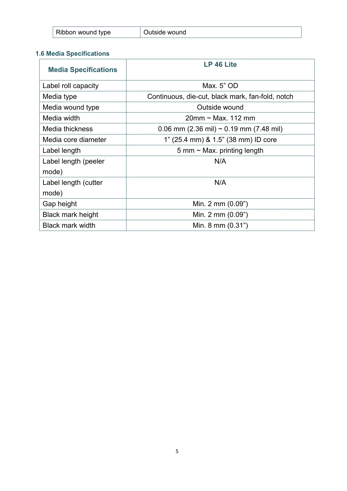 5 mm ~ Max. printing length