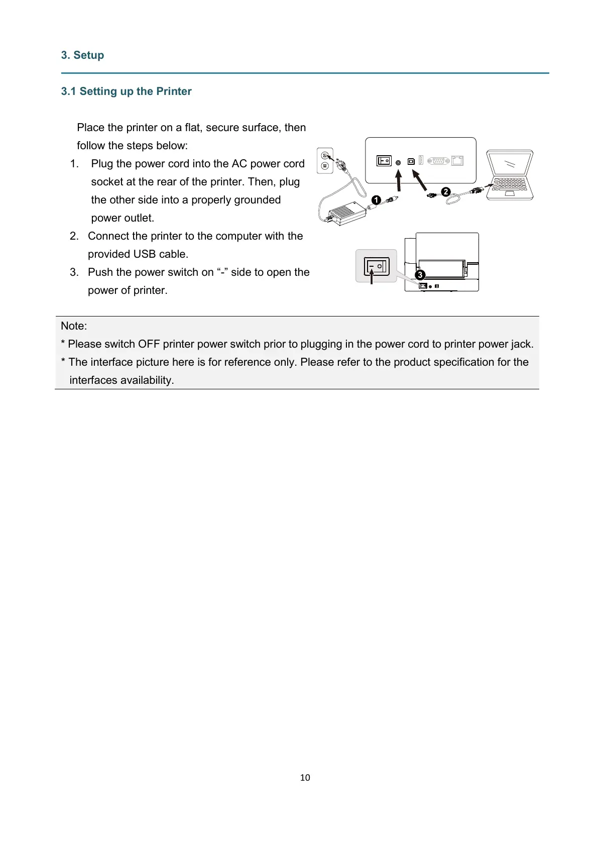 * Please switch OFF printer power switch prior to plugging in the power cord to printer power jack.