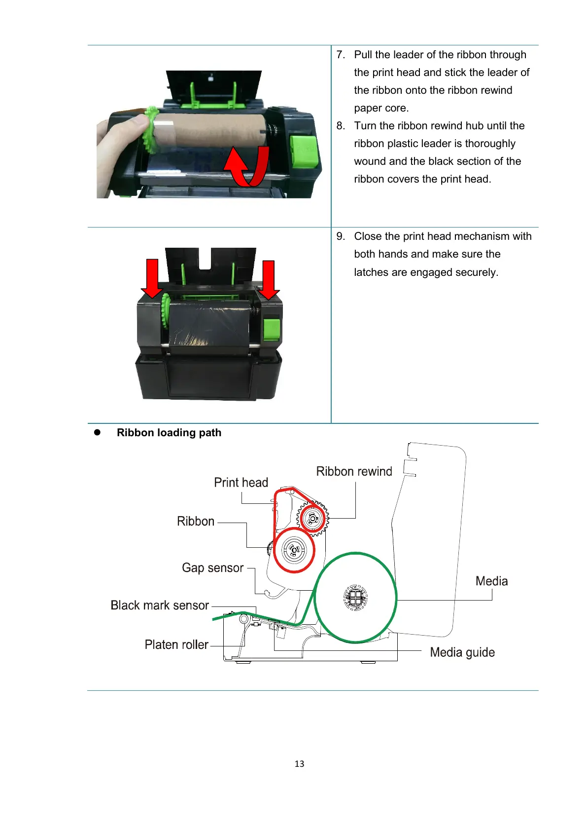 the ribbon onto the ribbon rewind