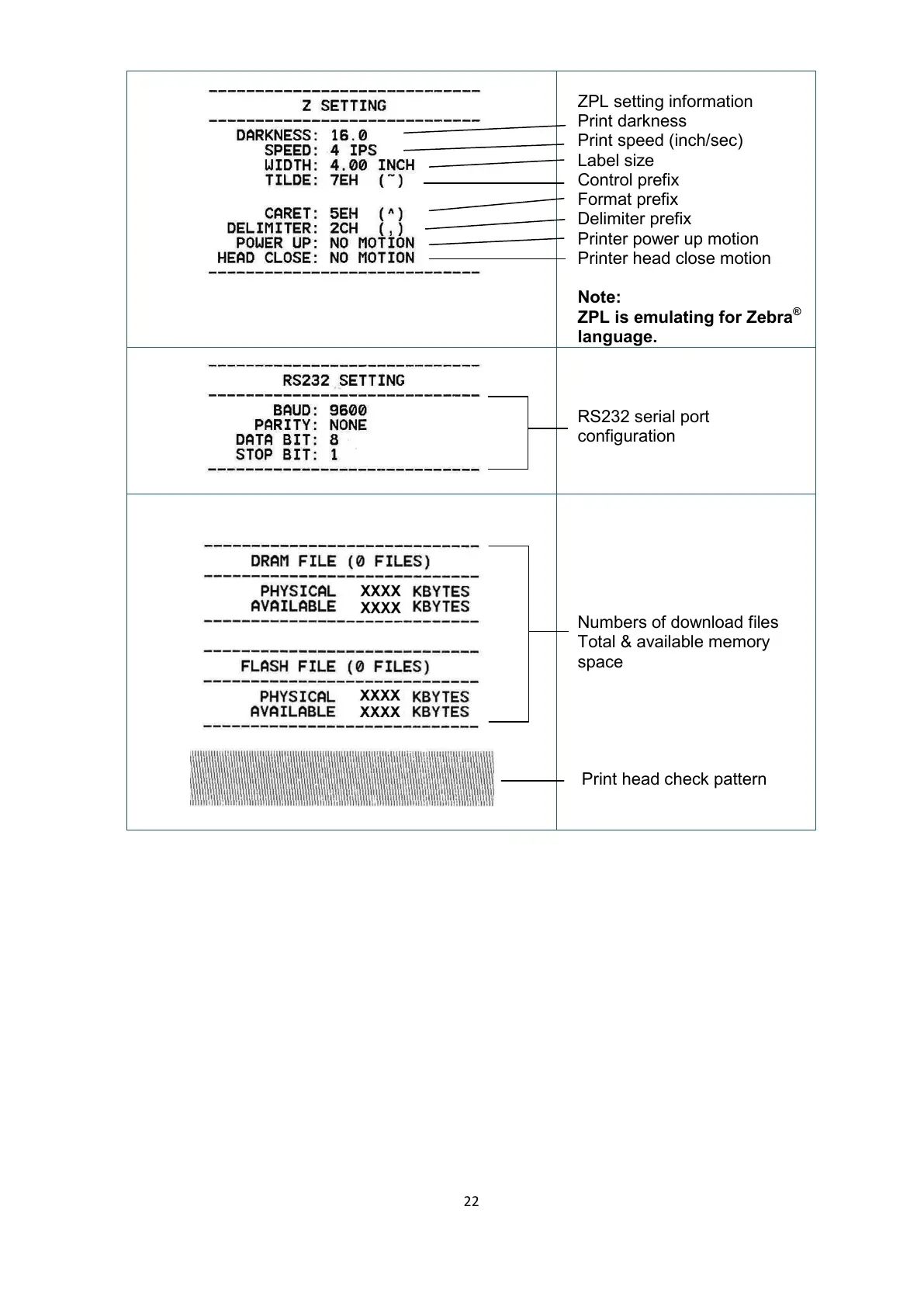 ZPL setting information
