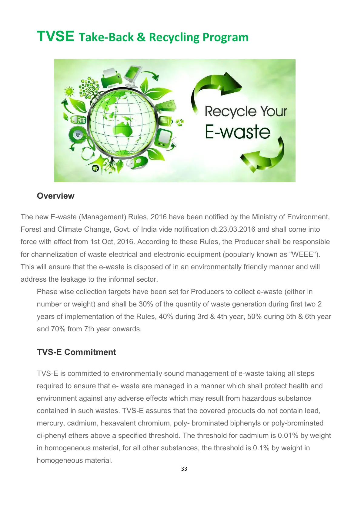 TVS-E is committed to environmentally sound management of e-waste taking all steps