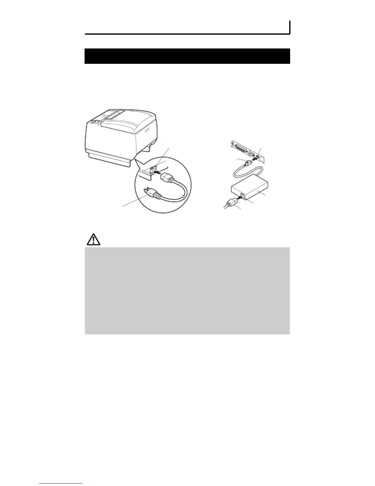 For the AC adapter type printer, connect the cable connector of the AC adapter to