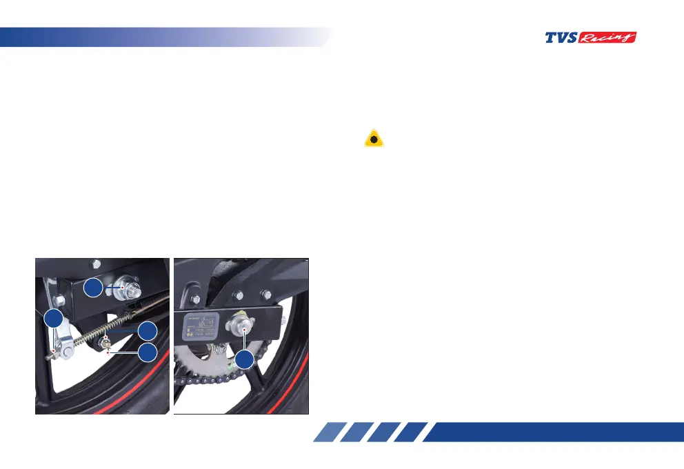 2. Remove the rear brake adjuster nut (1) and